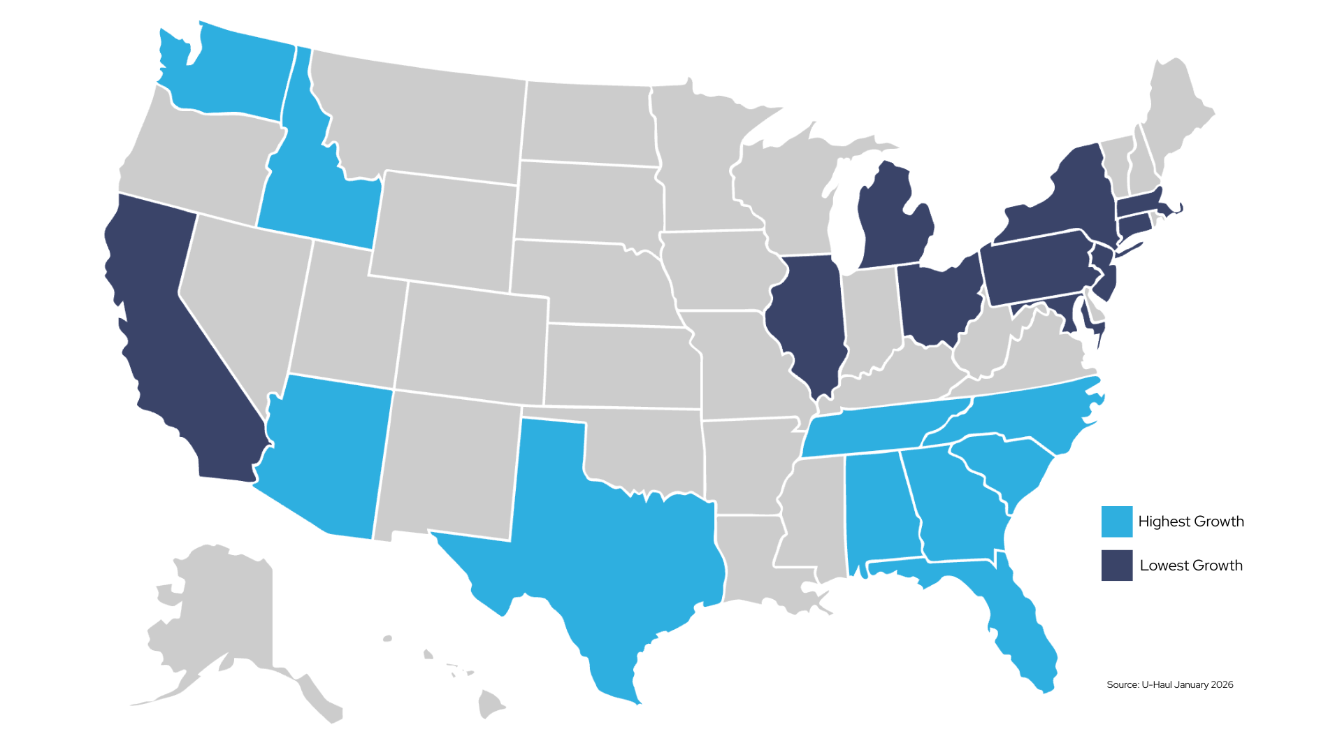 Compiled from more than 2.5 million annual one-way truck, trailer, and U-Box® transactions, the index provides one of the most timely indicators of where Americans are relocating — often serving as an early signal of emerging housing demand trends.