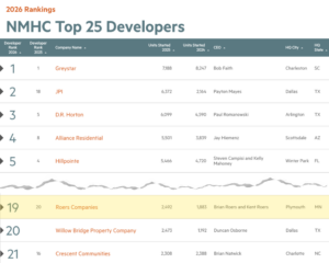 Roers Companies has once again earned national recognition on the 2026 National Multifamily Housing Council’s (NMHC) 50 rankings, the annual ranking of the nation’s top apartment owners, managers, developers, builders, and syndicators.