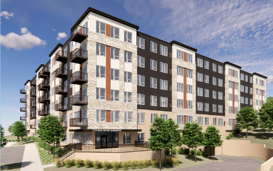 Ellwyn will bring 144 affordable apartments to Cottage Grove, Minn. Future residents will enjoy a well-rounded amenity package, including a fitness center, yoga room, multiple work-from-home spaces, community room, game room, and an outdoor courtyard. A walking trail will also connect the community directly to a nearby park, adding to the appeal for active residents.